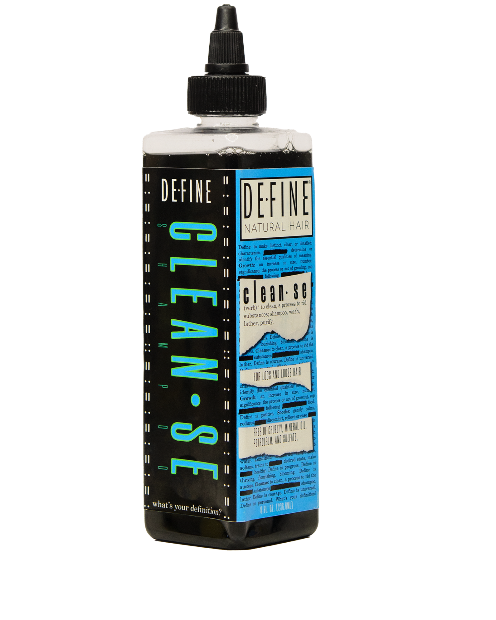 Define Natural Hair “Cleanse” was formulated to rid the hair and scalp from dirt, oils, and product buildup. The cool and refreshing Peppermint Oil will help soothe dry and itchy scalp leaving your hair clean and your cuticle and pores open for “Hydrate”.
