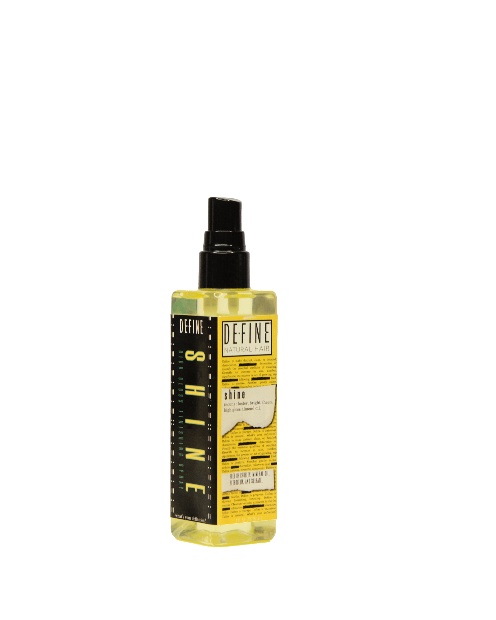 SHINE is the BEST high gloss almond oil finishing spray for your LOCS or LOOSE NATURAL HAIR. This spray is lightweight and has a clean scent of almonds.